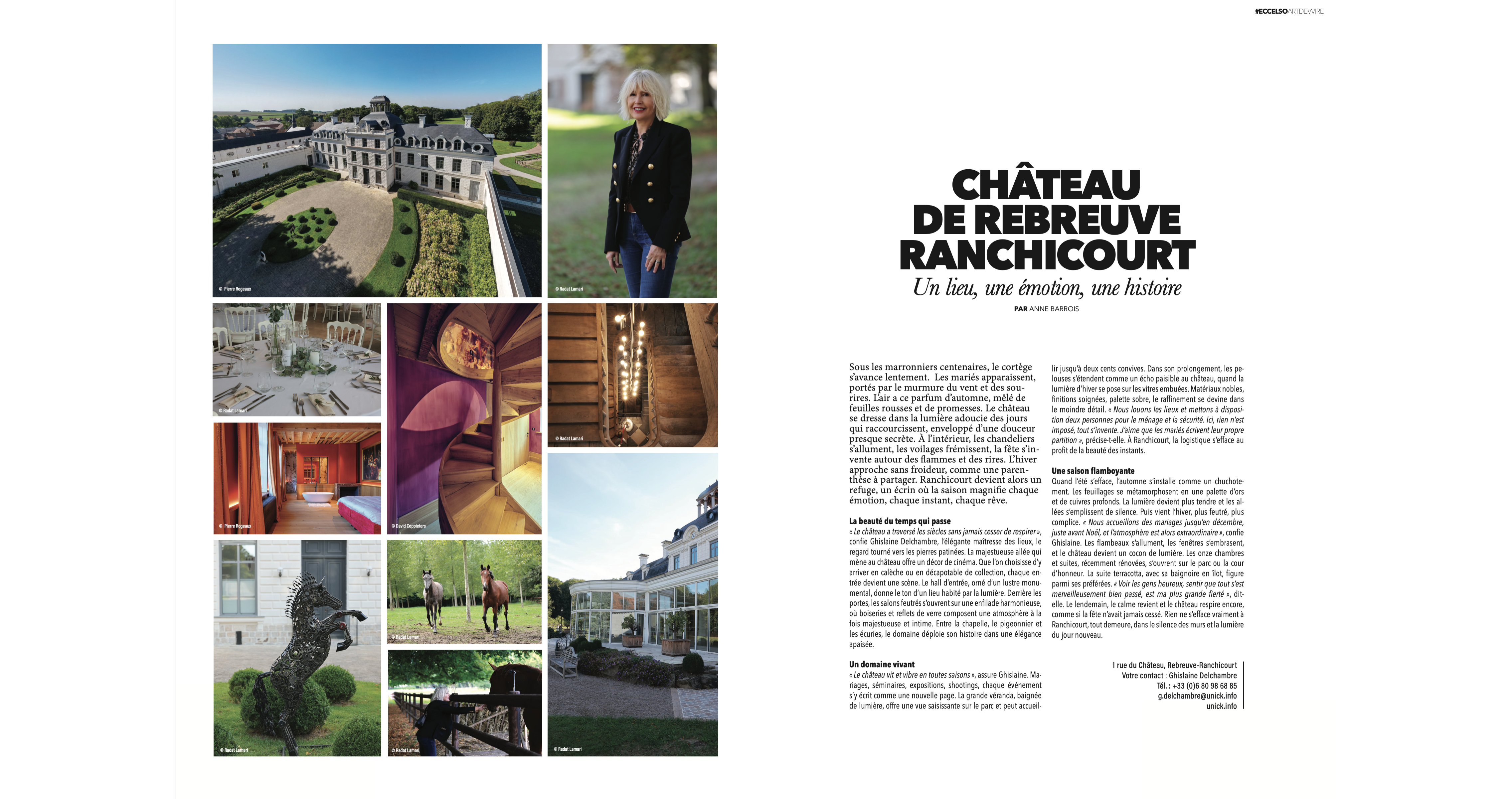 Sous les marronniers centenaires, le cortège s'avance lentement. Les mariés apparaissent, portés par le murmure du vent et des sourires. L'air a ce parfum d'automne, mêlé de feuilles rousses et de promesses. Le château se dresse dans la lumière adoucie des jours qui raccourcissent, enveloppé d'une douceur presque secrète. À l'intérieur, les chandeliers s'allument, les voilages frémissent, la fête s'invente autour des flammes et des rires. L'hiver approche sans froideur, comme une parenthèse à partager. Ranchicourt devient alors un refuge, un écrin où la saison magnifie chaque émotion, chaque instant, chaque rêve.